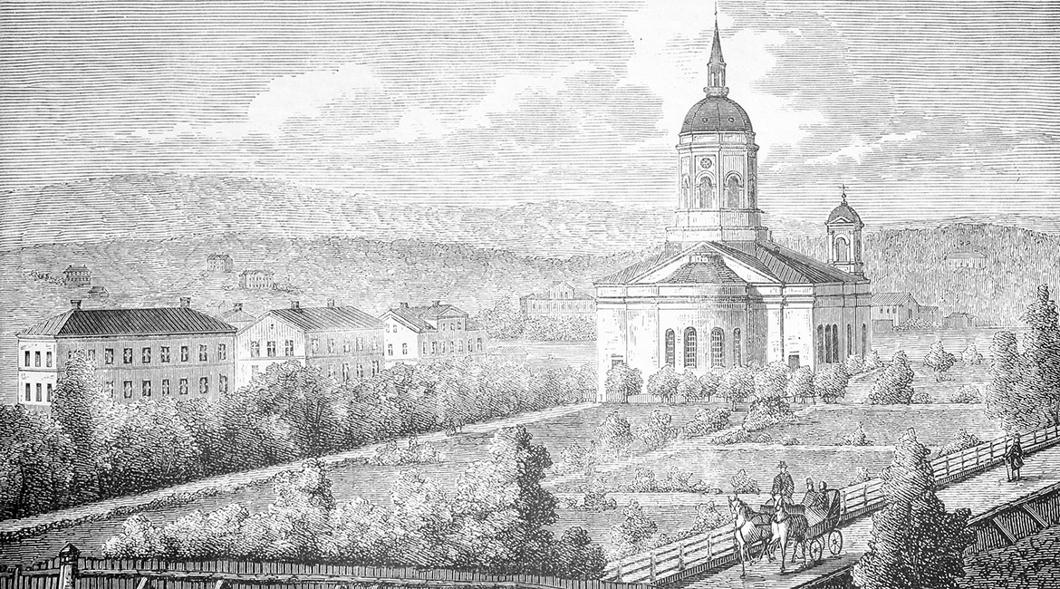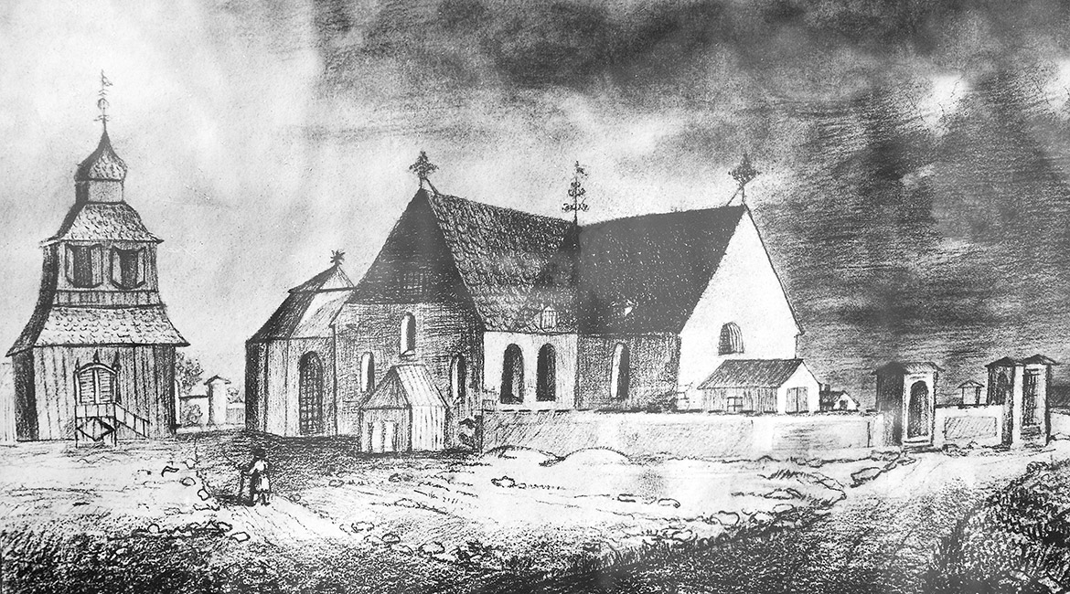 Kyrkan som byggdes efter ryssbranden 1721 och revs 1841