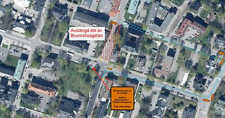 Avstängningen av Brunnshusgatan mellan Nybrogatan och Pumpbacksgatan förlängs till och med tisdag 1 november.