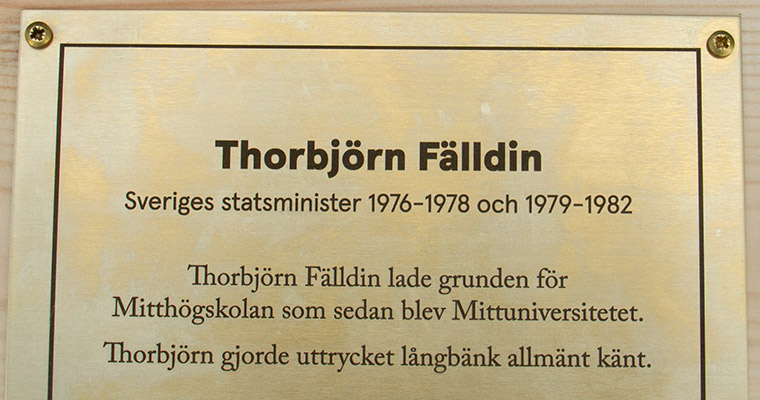 Politikern och lantbrukaren Thorbjörn Fälldin (1926-2016) från Ås i Ramvik är en av Härnösands kommuns mest välkända profiler. Han var partiledare för Centerpartiet och statsminister i tre regeringar under 1970-och 1980-talet. Nu finns ett minnesmärke i hans namn i Härnösand. Politiker och tjänstemän från Härnösands kommun, Härnösandsbor och anhöriga till Thorbjörn Fälldin fanns på plats vid invigningen den 22 juli.