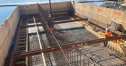 Intensiteten i jobbet med de fem brostöden till nya Nybron ökar. Nu pågår arbete med alla stöden samtidigt. Under måndag vecka 15 görs också de allra sista pålningarna.