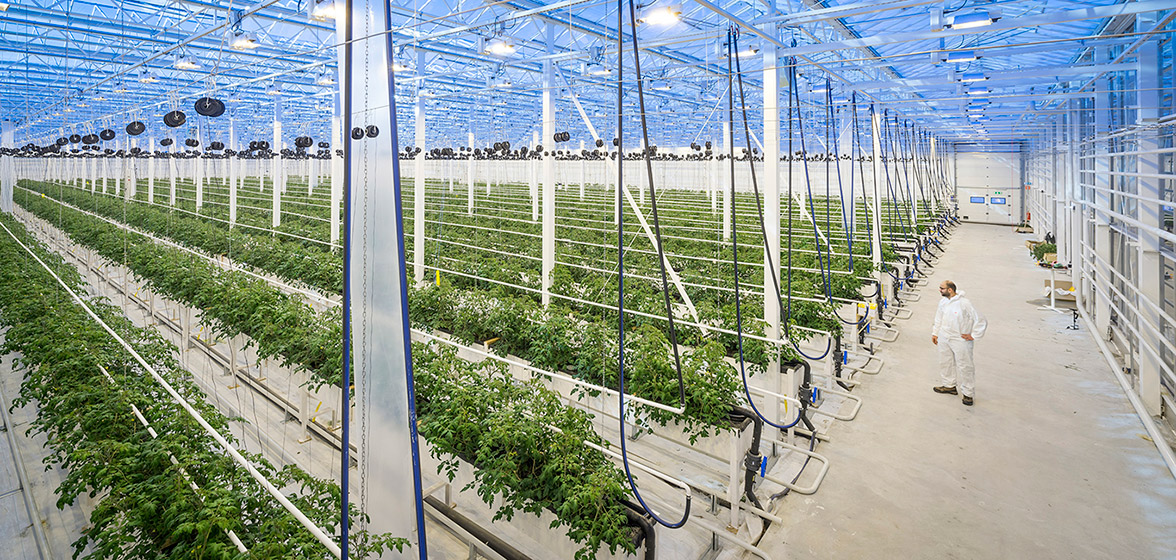 Stort växthus med tomater